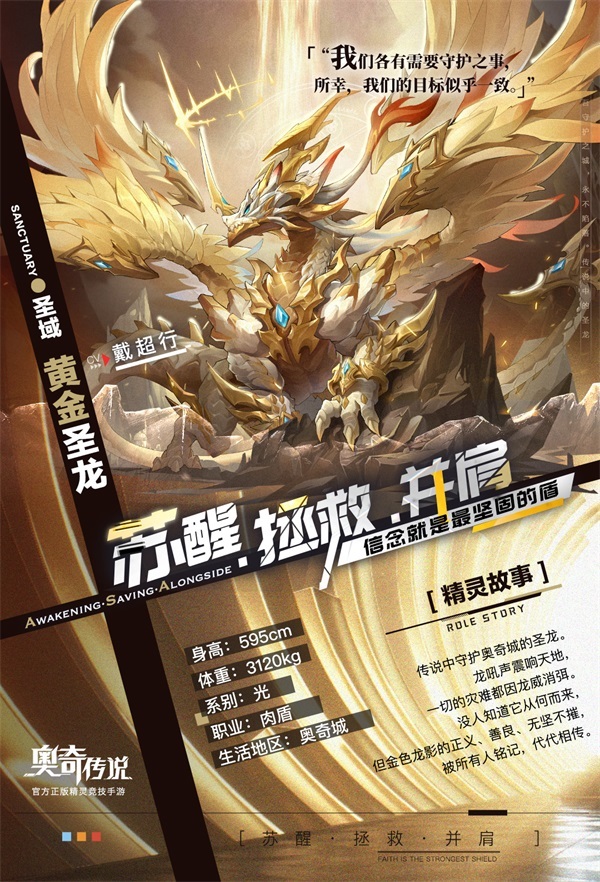 前情提要: “星蓝龙——!”小诺紧紧抓住了眼前的尾巴。 他们在变形的空间中下坠,又被不知名的柔软所托住。 金黄色的光打在漂浮的雾气中,隐约浮现出一行文字。 【现在开始计算全员能量——】 雾气之后,是模糊又熟悉的轮廓。 传说中守护奥奇城的圣龙,即使不发一语,也庄严如天神, 那是奥奇大陆上的每一个人都会永远铭记的金色龙影。