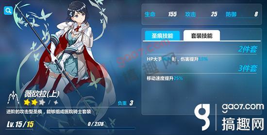薇欧拉三件套 获取方式:普通模式4-5、4-16、4-28掉落;补给产出 在游戏初期「游侠」可以选择的圣痕不多,其中【夏洛特】和【露西亚】的两件套效果同样适用于「游侠」,但要说起更加贴合「游侠」的二星套装,那么【薇欧拉】算是一个不错的选择,「游侠」中远距离的战斗风格能很好地保证HP残量,3件套的加速效果配合「游侠」自身的被动技能【新星疾行】,使得「游侠」具有全角色中最快的移动速度,位移能力几乎能够和芽衣「绯红」的三段闪持平。当然,这套圣痕的入手时间太晚是一个致命的缺点。