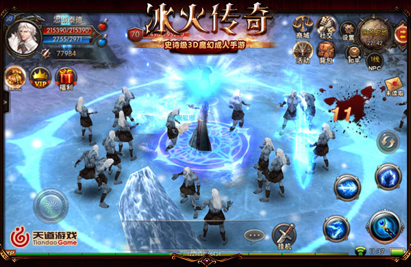 《冰火传奇》击杀异鬼 在操作模式上,游戏采用手动和挂机两种战斗方式,玩家既可以控制虚拟摇杆,配合普通攻击和技能按键释放技能。也可以使用挂机,轻松杀怪,感受技能特效带来的视觉享受。在战斗中会有连击数,暴击,自动补血,补蓝等设定,战斗当然更加自在有趣! 魔龙狂舞,异鬼侵袭,这冰与火的风暴将在掌中起舞,放下追剧无果的愁苦,投入到维斯特洛大陆的守护之战中来吧!为无上的荣耀与激情,奏响你的英雄战歌! 《冰火传奇》官方网站:http://bh.tdgame.cn/