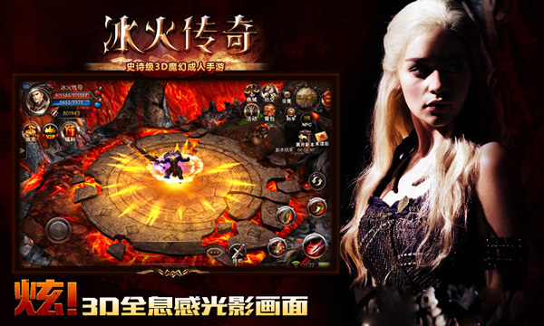 “权力的游戏”剧照 不知在编剧手中,龙母是否有机会骑龙抗击异鬼入侵,解救维斯特洛大陆。但是你可以!一款基于美剧“权力的游戏”为蓝本,由天道游戏自研并发行的手机网游《冰火传奇》,带你感受冰与火的风暴,骑乘魔龙战斗,抗击异鬼侵袭,一切尽在掌中!不仅如此,更多原著剧情都通过游戏的不同玩法一一呈现,感受劲爽的游戏体验!
