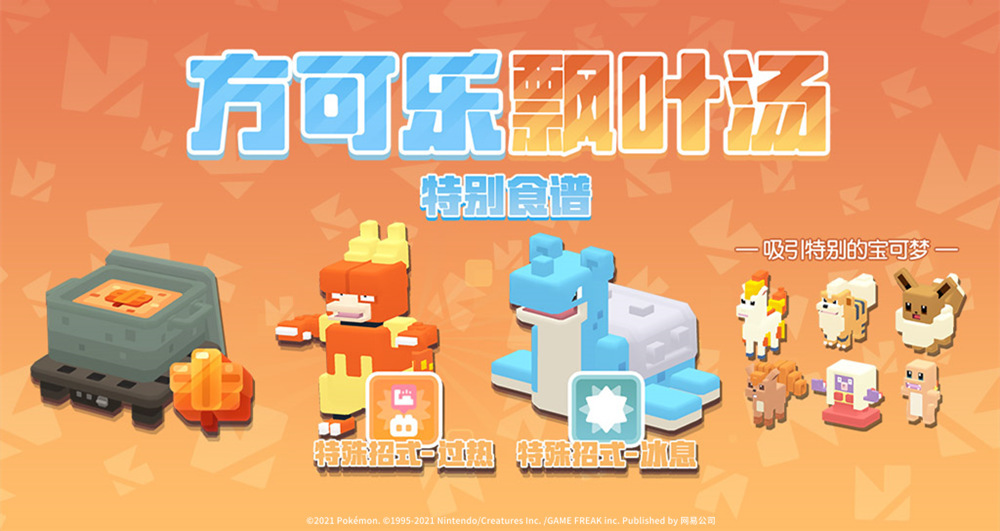 全新料理 特别食谱开启 如何获得全新属性宝可梦们青睐?探险家们收集新食材“枫糖叶”后可以尝试制作”方可乐飘叶汤”,烹制成功的料理可以同时吸引众多的火属性、冰属性宝可梦。看来即使属性完全相反,宝可梦们对美食的热爱却是共性。