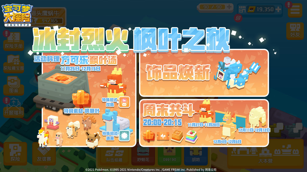 火热与冰寒联袂登场,开启探险全新时刻!由网易、The Pokémon Company、GAME FREAK inc.携手开发的《宝可梦大探险》,本次更新后冰、火两种属性的宝可梦将成为活动的主角,相关主题活动全情开放,无论是挑战类、集结共斗、兑换类还是全新食谱,精彩玩法来袭,丰厚礼包福利惊喜爆发!