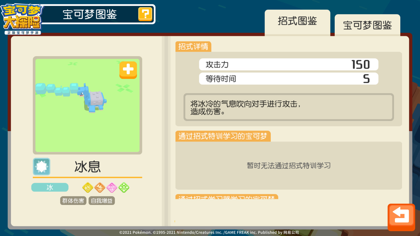 而冰属性招式“冰息”,有群体伤害和异常效果,会用冰冷气息吹向对手进行攻击,造成持续伤害,还可以配合方石加成打造真正的成吨伤害,让敌人秒懂什么是寒冷。