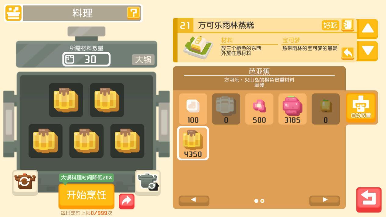 在《宝可梦大探险》的烹饪料理玩法中,新食材的出现往往也意味着新食谱的开发。在热带雨林经常见到的“芭亚蕉”,可以烹饪出全新料理“方可乐雨林蒸糕”,对巨钳螳螂等宝可梦有着极强的诱惑力,还有可能吸引到掌握特殊招式“十字剪”的巨钳螳螂,据说实力非常强悍!