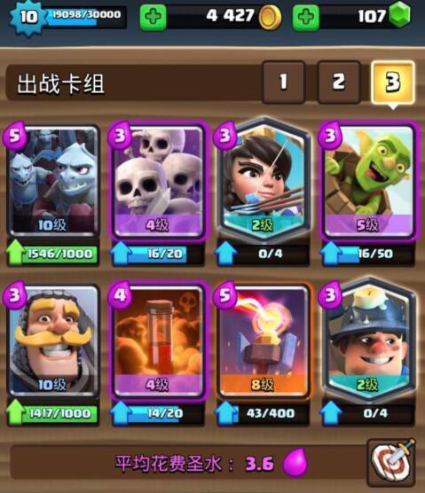 皇室战争快攻低费卡组推荐,源源不断粉丝套,为大家介绍皇室战争快攻源源不断兵种卡组,希望这篇能帮到皇室战争的玩家! 这个卡组是经过这次改版后比较增强的一个卡组,并且在改版之前也是非常的强力的,卡组的核心在于能够源源不断的打出较多的进攻套路,并且没有收集器也使得这个卡组非常的灵活,同时当敌方使用收集器的时候我们还可以强攻,来看详情: 【卡组搭配】 卡组思路:这个卡组是一个比较偏向于快攻的灵活性卡组,卡组中的平均费用是较低的,只有3.6,卡组中大半卡牌都是3费为主,并且没有圣水收集器这张卡牌,所以在打法上偏向于急攻,特别是在敌方先放了收集器的时候,更是我们进攻的一个好的时机,并且这个卡组有着较多的骗取敌方法术的卡牌,所以在敌方交出了一些克制的法术卡牌时,我们则进攻则更加的具有威胁性,总之只要能打乱敌方的节奏,从而带入我们的节奏的话,那么基本这场比赛就拿下啦~ 【单卡解析】 核心卡牌: 矿工:消耗卡和肉卡,这里的矿工是比较灵活的,玩法也是较多,主要是搭配进攻来使用,比如敌方使用了一些房子或者收集器这样的建筑卡时,我们可以搭配其他卡直接进行一波进攻,并且随着收集器的改版,矿工的优势更佳明显。 亡灵大军:核心空战卡,能够非常快速的解除敌方的一些较为强力的卡牌,比如天狗/野蛮人/气球兵等,并且在我们其他卡牌骗取了敌方的法术时,那么我们矿工+亡灵大军的一波则是非常强力的。 地狱之塔:核心防守卡,地狱之塔主要是对抗一些血量较高的大型单位,比如巨人/石头人/皇家巨人/熔岩猎犬等较为肉的卡牌,由于其特殊的递增伤害性,所以可以快速解除这类卡牌,但是需要注意小电的攻击,小电可以打断我们的递增伤害,让其重置。 搭配卡牌: 毒药法术:这张卡牌在改版后虽然没有了减速效果,但是在清理敌方的低血量卡牌时还是比较好用的,进攻方面可以搭配矿工,当敌方使用费用较高的卡来解除我们矿工时,我们毒药还是很好的(如野蛮人/女巫/火枪手等),并且在防守方面搭配地狱塔可以帮助其清理一些低血骚扰卡。 哥布林桶:偷塔专用卡牌,或者说是骗箭雨的卡,这张卡牌配合亡灵大军,能达到骗了一个箭雨,另外一队疯狂输出的状况。 骑士:3费的半肉半输出卡,骑士的攻击速度比较快,并且有着较高的血量,在解除一些血量中等或者较低的卡牌时有着很大的优势,比如火枪手/女巫/法师等卡牌,同时配合我们的公主塔也是能单挑迷你皮卡的。 骷髅军团:改版后非常好用的卡牌,比较灵活,只需要3点费用,并且有着较高的伤害,特别是对抗敌方的一些地面卡时有着不错的优势,同时这张卡牌也是骗取敌方小电和箭雨的不错卡牌,在敌方交了这些法术卡后,我们其他卡则会很强。 公主:公主的用法还是比较灵活的,这里有2个目的,一方面主要是对空可以解除敌方的空战卡,比如亡灵大军,或者地面的人海卡野蛮人等,另外一个作用则是骗取敌方法术,当敌方使用法术解除我们公主时,那么我们其他的卡牌则有着更好的输出空间。 【起手思路和对战细节】 起手思路:我们的卡组在起手方面还是比较灵活的,我们有2个选择,一方面我们可以等待敌方先出卡,然后在出其对应的对抗卡,比如敌方使用了6费的收集器,那么我们直接矿工+其他辅助卡牌进行强攻,敌方4点费用是较难抵挡我们10费的,另外一个方面如果我们先出卡的话,那么可以直接骑士或者公主沉底,这两张卡还是比较稳扎稳打的,或者丢他一个飞桶试探下他的法术卡也是可以的。 对战细节: 1.在起手方面如果敌方使用了收集器的话,我们直接强攻即可,因为敌方只有4点费用,是很难抵挡我们10费的强力进攻的。 2.公主/骷髅军团/哥布林飞桶/亡灵大军这四张卡牌都是比较不错的骗取敌方法术的卡牌,那么当敌方交出法术卡牌后,我们如何搭配进攻则是需要合理的搭配。 3.这个卡牌的卡序是比较快的,所以可以打出很多波的进攻,这里尽量要打出自己的节奏,让敌方一直处于被动阶段。 替换卡牌 骷髅军团替换骷髅守卫:骷髅军团的优势在于改版后费用是较低的,所以使用起来较为灵活,并且在骗取敌方法术上也是一把好手,这里替换骷髅守卫的话,因为有着骷髅盾牌的保护,所以在对抗一些特殊卡牌时有着较好的优势,比如电磁炮。 这个卡组在玩法上是非常灵活的,源源不断的进攻能让敌方出现错乱,从而掉入我们的节奏,并且这个卡组不但没有受到这次改版的消弱,反而增强了(毒药法术的消弱对这个卡组影响较小),这里推荐大家试试这个卡组哈~ |