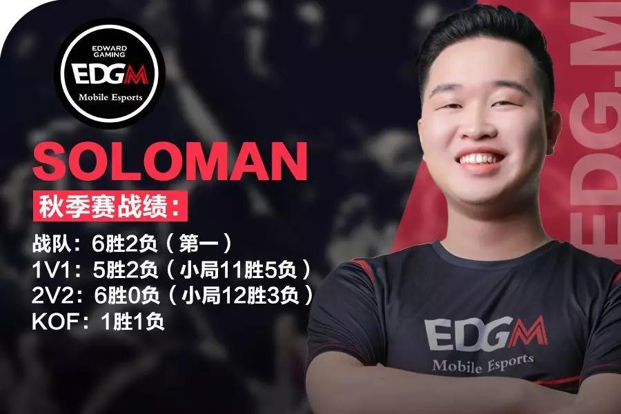 除了战绩高居榜首,EDG.M以2V2为核心的打法更是独树一帜。1V1战绩 12胜11负并不出彩,但7胜1负的2V2直接碾压联盟,在五盘三胜的赛制中,2V2无敌等于自带1-0开局。强势的2V2,两位新人的亮眼发挥,抗下压力的潇洒,再加上打出MVP级表现的Solo Man,让EDG.M的冠军豪言变得清晰。 半程MVP:Solo Man