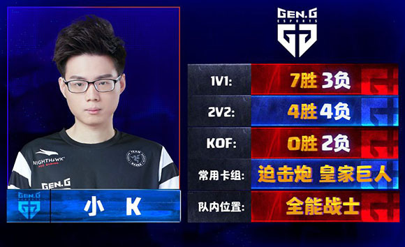 梦回巅峰的小K,堪称银河战舰战绩本赛季最大的惊喜。单打7胜3负胜率队内第一,还有终结糯米糍10连胜的高光表演,2V2也是4胜4负贡献不小,综合表现完全不逊于单王。更可喜的是,向来执着于小费的小K,本赛季卡组更加的全面,皇家巨人、石头人都有涉猎,曾经CCGS上风头无量的大魔王宣告归来。季后赛,小K能否当一次英雄、拿一个冠军?让我们拭目以待。