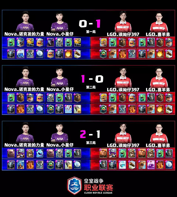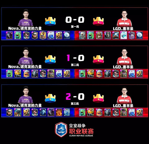 ![]() 紫金不灭,王朝永恒! 6月8日晚,CRL春季赛总决赛华彩落幕。最终,凭借诺克发的力量、小陈和小星仔直落三盘的强势发挥,永不加班的Nova横扫LGD夺冠,开创史无前例的四连冠伟业。诺克发的力量也凭借冠军之夜的完美表现加冕总决赛MVP ![]() 在率先打响的总决赛表演赛中,单王和豆豆领衔的两组全明星战队,带来了夺龙、明牌和互选三种趣味模式的比拼,将皇室战争多元玩法的魅力展现得淋漓尽致,用接连不断的欢声笑语和嗨爆全场的热烈氛围,为最终的大决战暖场! ![]() 八大明星为总决赛暖场 餐前甜点过后,伴随着燃爆全场的音乐和激情洋溢的解说词,当晚的真正主角——来自Nova和LGD的队员及教练踏上炫美夺目的终极战舞台,象征中国皇室最高荣耀的皮卡超人黄金之拳被两队众神围绕,激励他们为了冠军而战。 ![]() Nova和LGD打响终结决赛 Nova冠军之路 第一盘1V1 ![]() 头阵,Nova派出胜者组决赛发挥完美的小陈,LGD则继续久宝宝出战。首局,小陈冰法飓风皇家巨人对上久宝宝的克隆狗,前期小陈建立巨大优势,冰法飓风又完克克隆。眼看小陈胜利在望,亡命一波的久宝宝桥头克隆出千军万马,而小陈的飓风失误未能拉到樵夫,被樵夫疯狂砍塔逆天翻盘。 第二局,小陈放大招皮卡屠夫墓园,久宝宝则是绿巨人双王,打得较为保守的两人鏖战6分钟不分胜负。第三局,久宝宝没有换卡,小陈又变一套地震猪。没有拉扯的久宝宝,让小陈每只野猪都有伤害,而自己的推进却无法逾越地狱塔的天堑。最终小陈牢牢控制节奏、扳平比分。 特殊决胜局,头硬的久宝宝还不换卡,小陈则拿出当天的第四套卡组大闪石头人。双方拖至双倍开战,互相推进抢血,悬念保留到最后一刻。绝命时刻,久宝宝率先大闪抢血,而小陈在用飓风极限解场后,紧跟一发大闪,以16滴血量的优势绝杀成功,为Nova先拔头筹! 第二盘2V2 ![]() 第二盘2V2,双方都派出了最强组合,Nova是搭档4胜0负的诺克发的力量+小星仔,LGD则是8胜3负的诶呦仔397和喜羊弟。第一局,祭出8空军天狗的LGD率先发难,打得Nova的皇家巨人毫无脾气。但随后场上风雨突变,Nova组合第二局同样拿出天狗打内战,以彼之道还之彼身,再次扳平比分。 决胜局,Nova变换石头人套路,LGD则是胖子双王。打得大开大合的两队各自换路进攻进入残局。残局中,Nova尝试打三星未果后开始改变策略,一边一个石头配合法术磨血蹭塔,防守中更多次上演神级飓风火箭解场。最终,石头人强悍的抢血能力更胜一筹,Nova再度逆转LGD手握3个赛点。 第三盘1V1 ![]() 熟悉的赛点盘,Nova的那个男人依旧如一座大山守在此处。而LGD则派出了季后赛秘密武器——连斩单王和糯米糍的喜羊弟。首局,诺克发的力量大闪羊打冰冻墓园,皮卡没处下、墓园又不好解处于绝对劣势。但面对天克卡组,诺克发的力量顽强防守+绝佳人品,成功拖平、避免再次雪崩开局。 第二局皇家巨人内战,诺克发的力量又在开局几乎白送一个大闪的情况下,依靠稳健的心态和超强的运营能力,硬是把劣势打成均势,又把均势打成优势。最后时刻,两人换路抢血,诺克发的力量樵夫率先锁塔,上演超级逆转。 冠军局,诺克发的力量拿出绝活皮卡槌,而喜羊弟则没有换卡。这套没有盾牌的皇家巨人卡组,显然无法和暴力无比的皮卡槌相抗衡。诺克发的力量两路齐飞、攻势如风,打得喜羊弟节节败退。最终,诺克发的力量没有给对手任何机会,2-0带走喜羊弟,助Nova再次斩获春季赛冠军,自己也凭借独得两分的完美表演,拿下总决赛MVP! 冠军荣耀时刻 ![]() Nova决赛横扫LGD豪取四连冠 ![]() 强大团队造就神奇紫金王朝 ![]() 诺克发的力量再夺总决赛MVP ![]() Nova众将高举黄金之拳 伴随着Nova众将高举黄金之拳,这支王朝之师又一次赢来属于自己的荣耀时刻,开创了史诗般的四连冠伟业,紫金王朝无人可撼。而诺克发的力量也已斩获了四个CRL总冠军、两个常规赛MVP、一个总决赛MVP、一块亚运会银牌以及一个CCGS中国亚军,职业联赛时代第一人遥遥领先。 一次次绝处逢生,一次次夺冠之旅,让Nova已形成一种赢家气质,每位紫金将士都拥有一颗冠军之心。再度卫冕后,Nova道出了“因为习惯夺冠,就不会让冠军旁落!”的成功秘诀。而LGD虽然遗憾摘亚,但从奇迹出线到败者组一穿二杀进决赛,鸣圣的战队已经给我们带来足够多的惊喜! WCG下月开战 秋季赛8月荣耀回归 春季赛圆满落幕,而热闹的皇室电竞盛宴才刚刚开始。盛夏七月,古都西安,2019WCG全球总决赛将震撼开战。皇室战争项目也将展开个人赛和团体赛的双项冲金之旅。在团体赛中,CRL春季赛三强Nova、LGD和W.EDGM将代表中国,与来自亚洲和西方的其他六支战队上演巅峰之战,在“电竞奥运”的舞台上,向世界展示中国皇室的力量。 ![]() WCG后,CRL秋季赛将在8月16日荣耀回归,届时中国八强将再度归来。根据以往的经验,秋季赛的成绩将直接和年底的全球总决赛挂钩,而今年CRL全球整合为三大赛区,或将让中国拥有更多参加全球总决赛的名额。 ![]() 皇室电竞激战一夏不停歇 CRL秋季赛 直通全球的重要属性,必将让秋季赛的争夺更加激烈,Nova能否王朝永恒、千秋万代?谁又将代表中国踏上征服世界之旅?8月16日,我们CRL秋季赛不见不散! |