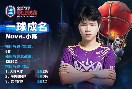 《卡牌冠名者》是官方推出一档新的选手栏目,每一期,我们都会选出一位将某张核心卡牌使用到神乎其技的职业选手,从大神的视角出发,发掘每张卡牌背后的操作秘密。内含大师的使用心得和推荐卡组,助你快速提高水平! 它是笼罩在竞技场上空的乌云,每一次出现都让人胆颤心惊,稍有不慎公主塔就将面临灭顶之灾,它的名字叫气球兵;他是中国最年轻的CR冠军,也是CRL公认的大场面先生,预判之王,他是Nova天才少年小陈。当出奇不意的气球兵成为小陈手中的底牌,看似注定的胜负便悄然间发生变化…… 一球成名:生涯七成胜率无惧天敌飓风