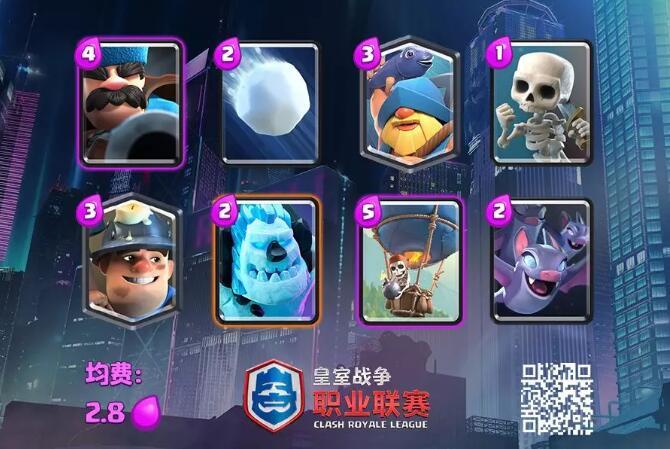 卡组构成:进攻核心为冰人气球矿工,防守则仰仗猎人和渔夫。 思路方面:攻防思路上,前期矿工试探挖塔,摸索对方卡组,牢记对面的对空。遇到小费卡组以防守优先,赚费后再冰人气球矿工一套combo。遇到大费则需要把控节奏,一旦对方下了比较关键的对空,就可以换路气球进攻。矿工看情况挖不挖,但雪球一定要拿在手上,砸不砸自己判断。此外,渔夫不能沉底或先下,每次都要目标明确,一拉一个准。 |