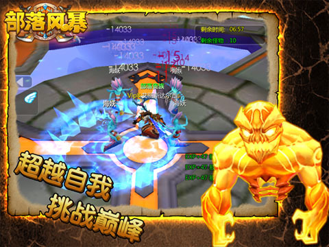 3.PK系统 : 自由战斗,火热PK 作为一款全开放式手游,《部落风暴》并不支持玩家胡乱杀人,但也不会剥夺玩家公平竞争的权利。因此,对游戏中野外BOSS的争夺是必须的!在20级时,玩家将被取消新手保护,并开放野外PK。此时正是野外BOSS肆虐的时刻,与亲朋好友一起组队杀人争夺BOSS,收获传说中极品武器吧!