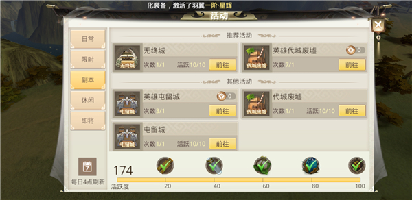 【次数有限 合理分配需求】 在掉落模式改版后,玩家可通过掷骰子比大小获得橙色装备。但是,每日的掷骰子次数是有限制的。每一个英雄副本每日只有两次掷骰子机会,每个副本的掷骰子机会不互通,当玩家通过掷骰子获得装备后将扣除一次。若掷骰子没有获得装备,将不会扣除次数。当日次数用完后,玩家可以继续进入该副本战斗,当这时再次掉落橙色装备,系统将自动默认玩家放弃掷点。所以,玩家要根据实际情况需求装备哦!此外,若玩家等级过高时,低级英雄副本的掷骰子次数将归零。