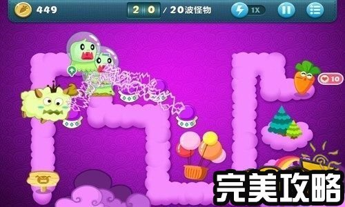 保卫萝卜天际4攻略截图 保卫萝卜天际主题第4关 难度为:冒险模式 是否有BOSS:无 本关怪物波数:20 本关可建造炮塔:瓶子、便便、风扇