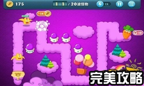 保卫萝卜天际4攻略截图 保卫萝卜的3个魔法球炮塔建造成功,然后开始消灭怪物累积金钱(如上图所示)。