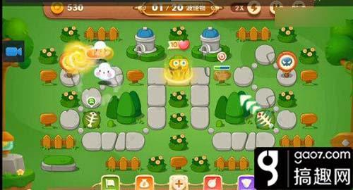 3.清除之后我们就会获得2个负电塔,之后利用负电塔的范围伤害,将周围的障碍物都清除掉,很快我们就会发现3个正电塔,再讲中间的雪花升满级,前中期我们就能安稳度过了。