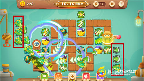 鱼刺能对路线上近中程的怪兽实施单体攻击伤害,不但攻击速度相当快,而且还伴随着眩晕效果,有了鱼刺的强力加盟,整个炮塔群的攻击力达到了完美程度。