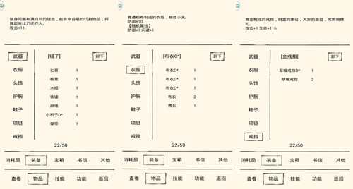 还没有十万江湖经验,不能参加武林大会,主线任务没法继续,头疼; 门派已经加入,过了最难的考核关卡,现在除了单挑各路NPC无事可做。 这样一段鸡肋的时间有什么好法子度过呢?建议玩家们去接取“环任务”,不仅可以打发无聊的时间,又有丰富的经验、潜能、银两可赚,一举多得! “环任务”可以一直接,是一项拥有长期稳定收益的工作,对新手们好处多多。在村长处可接“拜访”任务,奖励与等级挂钩;在村长夫人处可接“寻物”任务;在平二指处可接“打架”任务;在燕小七处可接“除恶扬善”任务。 ![]() 闯荡江湖,没几件趁手的兵器怎么行?另外衣服鞋子配饰什么的也都通通扔过来,增加防御效果可是多多益善的。平安镇里有一些可以免费拾取的装备,(不拿白不拿~)千万别错过了:麻绳在家里;匕首在杂货间里;手套在药店里;板凳在客栈里;锯子在仓库里;锤子在铁匠铺里;金戒指和金项链在镇长家里;蓑衣在南郊;草帽和草鞋在东郊。 ![]() |