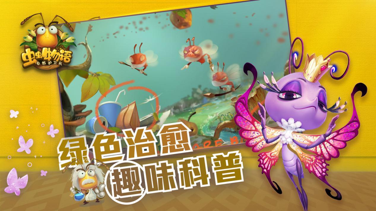 而反观《虫虫物语》的视野放在了微观世界的小虫虫身上,带领着玩家与蝴蝶蚂蚁蜜蜂这些小生灵为伴,不仅学到了关于昆虫和大自然的趣味百科,又重温了一段那难忘的童年岁月。 在带领玩家感受大自然的过程中,《虫虫物语》也对环境保护进行特别聚焦。在游戏的环保剧情中,玩家们将带领着一群虫虫拯救枯树、整治草丛、净化水源、抵御污染……不仅要消灭严重破坏生态链的害虫,还要与破坏环境的人类做对手,最终抵御工业垃圾的侵扰,树立绿色健康的生态环保观。