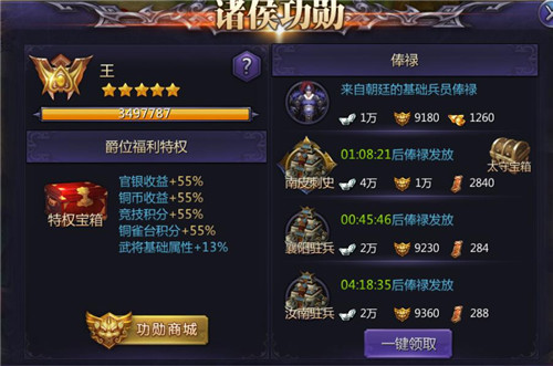 人为财死鸟为食亡,有宝藏的地方,必然会有争斗!在后期的版本中,神秘矿洞将会加入矿物争夺玩法和其他有趣好玩的内容,敬请期待! 爵位福利调整及界面优化