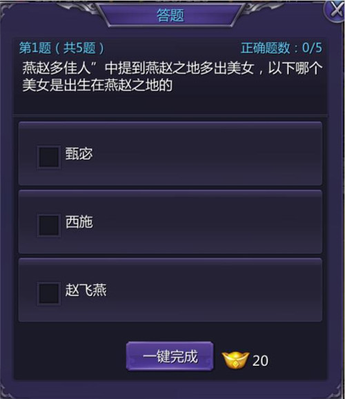 这题太难了!即便博览群书如同小编,也一样回答不正确!不过还好有一键完成!本次更新增加了一键完成答题任务、一键完成打怪任务,让你轻轻松松就能完成任务,领取奖励哦~ 商店优化:多种商店,功能齐全