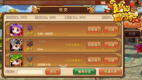 萌萌哒3D手机版冒险岛《超级冒险家》已正式全平台上线。冒险大陆开启,辽阔如此的世界怎么能缺少小伙伴呢,快来和小伙伴一起冒险吧!游戏打造有趣的社交系统,让你在冒险中不仅不会感到孤单,还能获得很多其他好处哦! 对于冒险家来说,社交是一件很重要的事情,大家可以通过社交系统认识很多朋友,一起在冒险大陆探险生活。每天大家都可以在社交界面互赠体力、领取体力,这不仅是一种交互方式,也能够为自己补充体力的消耗,让自己能够每天多一些体力去探险,获得更多的收获。除此之外,冒险家们还可以在社交界面跟好友切磋竞技,提升自己的实战能力。