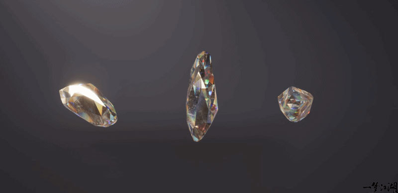 天机阁对钻石的处理采用了视差算法,使万华衍境上系列武器每一个角度的视觉感知都有很大差异却又各具美感,并运用了UV技术打碎模拟钻石的展示形式,以顶级的切割技术使钻石展示出最美的光学效果。