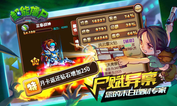 【名尸约架 干出你的最强大脑】 尸赋异禀 独创末日理财体系 独创个性化英雄天赋,商品打折、消耗缩减、奖励加成众多种类样式不一,养成僵尸英雄,每日福利拿不停!