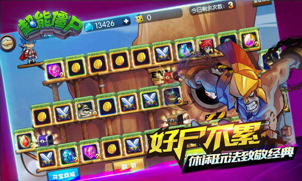 【尸赋异禀 独创末日理财体系】 原尸原味 招招让你脑洞大开 完美还原英雄在动漫中的招牌技能,超炫的全息特效必杀技,超酷的视觉冲击及碰撞打击感,细致入微极致展现 【原尸原味 招招让你脑洞大开】 好尸不累 休闲玩法致敬经典 休闲娱乐不能少,加入众多休闲娱乐玩法,经典“大富翁”玩法完美融入,好运摇出来,福利送不停!