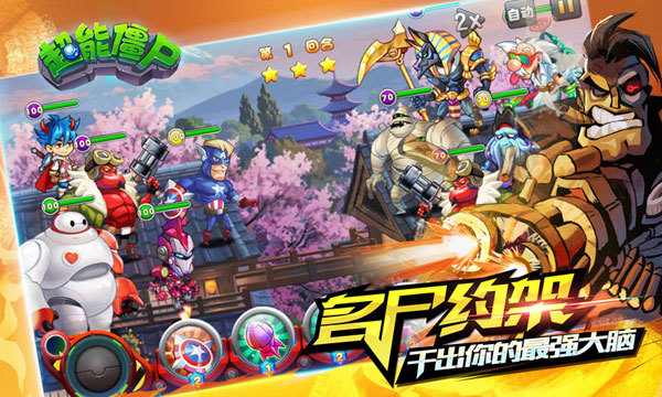 【天灾来袭 僵尸英雄济世复苏】 名尸约架 干出你的最强大脑 看齐天大圣VS雷神,谁更强!首创控点式回合战斗模式,巧妙布阵合理分配对战控点,轻松简洁收割丧尸军团!