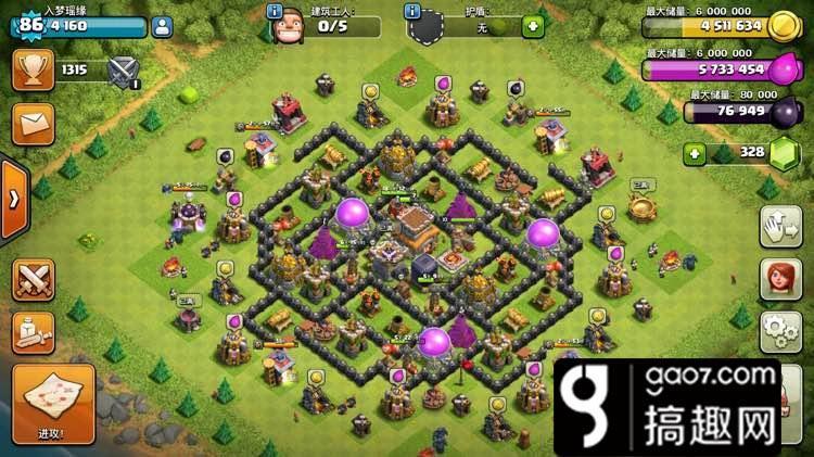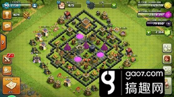 这个阵型是把大本独立的放在一个四方形里,同时把资源和城堡内置,周围再布置火力,这样的话不论是大本还是资源都能形成很好的防御,看到满灌的黑水有没有心动呢。