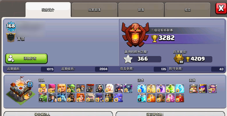 他是一位国内部落的首领,资料就不多说,重点是看看他的村庄阵型。