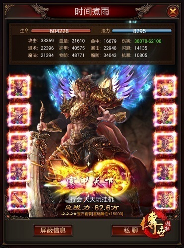 个人档案 服务器:安卓一区开天 公会:天天爱挂机 角色名:时间煮雨 职业:战士+道士