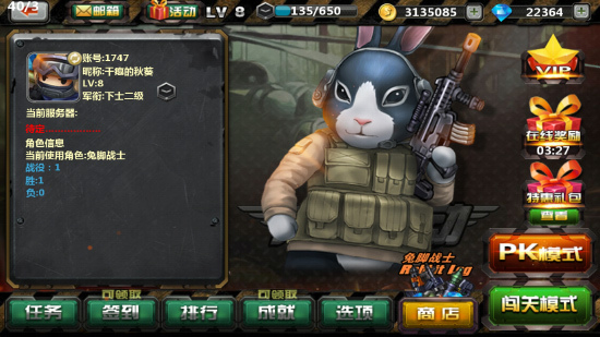 游戏中共12个角色供玩家选择,硬派大叔,呆萌萝莉,清新少女,气质御姐,应有尽有,一边是紧张刺激的枪林弹雨,一边是美丽养眼的美女军团,一个游戏.两种人生,夫复何求! 特殊的角色还会拥有独特的人物技能,与相应的武器配合,效果超群,千万不可错过! 1) 猫屎一号:三级跳,可连续跳跃三次。 2) 幽灵猎手:超级护盾的减伤比例从20%增加到50%。 3) 爱丽丝:装备的突击步枪伤害增加15%。 4) 娜塔莎:狙击枪伤害增加15%。 5) 圣战精英:装备枪械弹夹数量翻倍。 6) 威斯克:医疗包恢复血量从20%增加到30%。 7) 芙蕾雅:装备的散弹枪伤害增加15%。 8) 赛琳娜:装备的重机枪伤害增加15%。