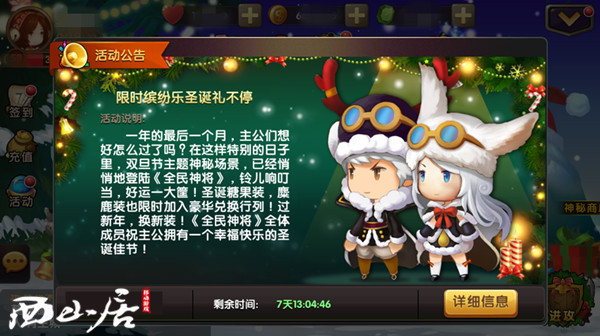 目前使用圣诞节礼包里面的糖果就可以兑换“圣诞糖果装”和“圣诞麋鹿装”这两款时装。参加各类圣诞专属活动就可以获得圣诞节礼包。所有的时装在装扮后都将获得专属的属性加成,成为主公们的另一个超强助力。喜欢就一起来收藏吧! 圣诞豪礼现实派送中!《全民神将》带你一起颠覆三国! 到各大应用商店搜索“全民神将”下载试玩,丰厚豪礼全民派送! |