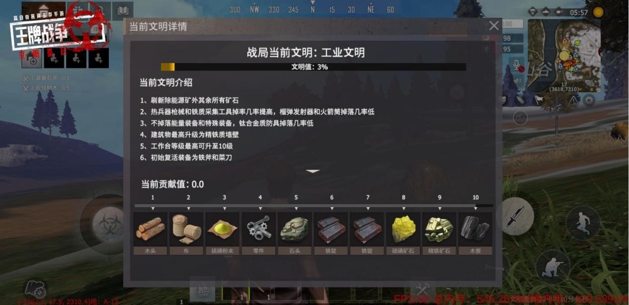 既然叫文明模式,当然整个新模式当然和文明有关。每个文明阶段允许玩家探索的内容都不同,玩家之间共同努力,在战局中进行研发和升级行为,积累文明值才能解锁下一个文明阶段。游戏被分为了三个完全不同的阶段,分别是原始文明、工业文明、现代文明。