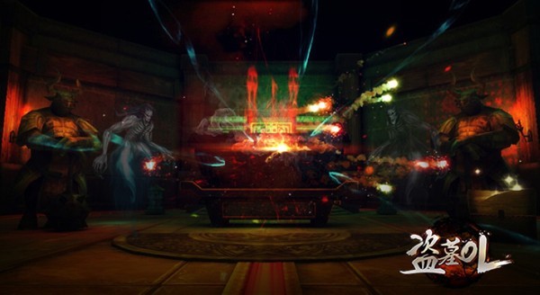 《盗墓OL》游戏中,漫长的墓道、阴深的祭坛、燃着鬼火的神庙,以及空中飘荡的Boss,画面虽阴冷但不失华美,昏暗的光效更是将气氛烘托到十足。在迷宫尽头,石棺盖突然打开,有邪灵和磷火飘出,石棺中的究竟是何神圣就不得而知了,玩家来到这里,想必会遭遇一场惊心动魄的考验。
