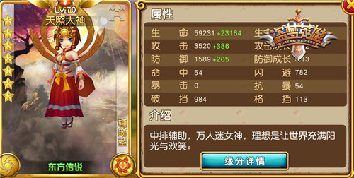 【技能评价】 天照大神技能可以加血减伤,还有控制。大招技能相当给力,可以对敌人造成致盲控制的同时为团队加血。天照能够完成辅助应该做的事情,问题是她的奶量不是很充足,大招范围太小以致于效果一向不明显。但她的基础属性、生命和防御成长都在顶尖之列,作为一个战场上生存时间比较长久的奶妈,有时会让人无从下手,大家可以参照一下各路游戏中有名的毒奶英雄。