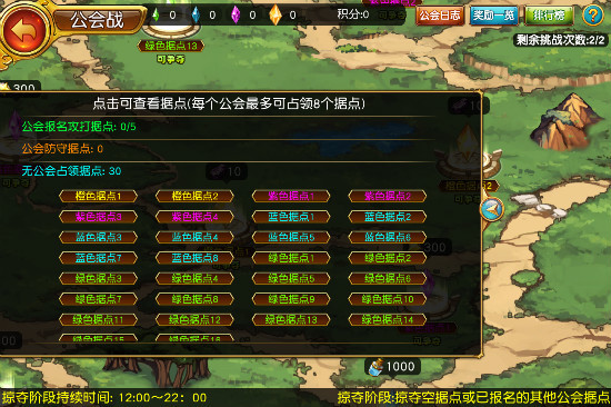 1)布局阶段持续时间是每天晚上22点到次日中午12点。 2)这段时间普通会员能做的事情:在公会占领的据点里面放置阵容。 ?小诀窍1:每个据点防守成功,放置防守阵容的会员会获得活跃度奖励,所以尽量在每个公会占领的据点里放置阵容。 ?小诀窍2:阵容有加油位的,记得在加油位放上上阵队员的缘分人员,可以提高很多战斗力。战斗力越高,此据点防守成功后你获得的活跃度越多。 ?小诀窍3:据点的复活次数是按照人头复活的,所以如果你上阵的是主力队员,可以要求会长或长老把你位置摆到前面位置,可以再次复活抵抗敌人入侵。 ?小诀窍4:优先在高品质的据点摆放阵容。除了获得的活跃度高以外,高品质据点每天占领的奖励也非常超值。 3)会长和长老能做的事情:负责报名下个掠夺阶段攻打的据点和安排据点内防守人员的顺序。 ?要点1:每个据点的复活次数根据防守队伍的多少变动,所以尽量布满每个据点的所有防守位置。 ?要点2:复活次数1次只能复活1个队伍,按照防守位置从头开始复活。所以尽量把高战斗力的队伍移动到前面去。 ?要点3:每次布局阶段公会只能报名5个据点,所以要仔细分析公会的力量是否足够打破所有报名据点的防守队伍(包括复活的防守队伍)。 ?要点4:高品质据点的分数远远大于低品质的据点分数,所以尽量选择1个高品质据点全力进攻,会获得更高的收益。 ?要点5:没有防守队伍的据点会在进入掠夺阶段时候变成没有公会占领的状态,所以记得每个据点都要放置防守队伍。 4.掠夺阶段玩法说明: