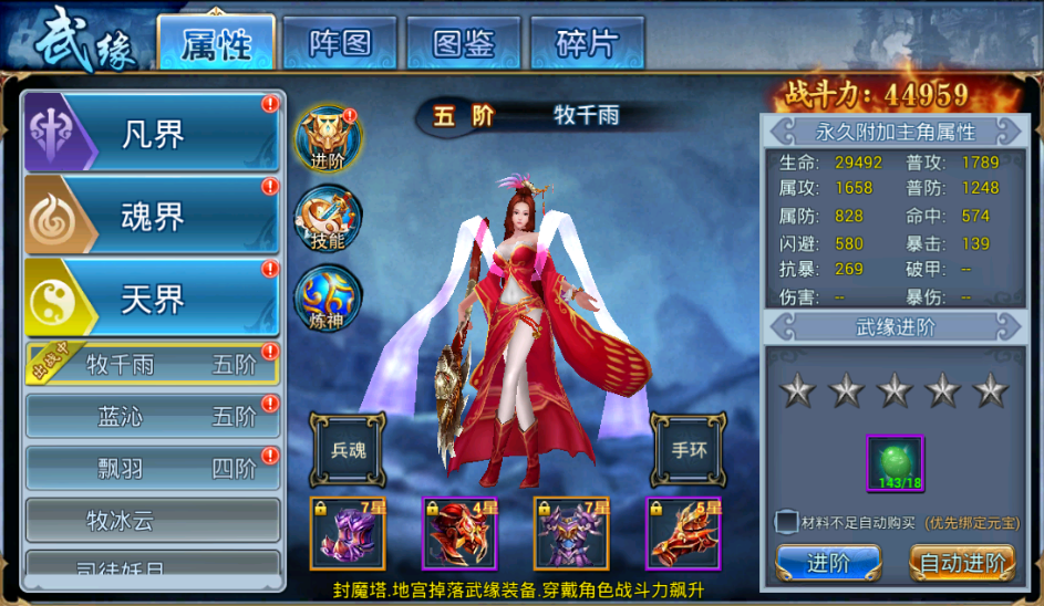 武缘,是《斗圣传说》内独具特色的系统,凡界、魂界、天界、异界、神界五大种类的武缘,不仅各有特色,还可以给玩家提供大量的属性加成,玩家在游戏内可以充分享受到探索、收集、培养等全方位的乐趣哦。 玩家在完成47级主线任务后可以开启武缘系统,从此红颜相伴,不离不弃。 ![]() 当玩家拥有武缘后,就可以通过进阶、技能提升、炼神等方式提高武缘的战斗能力,不同武缘的特点不同,适合的场景也不一样,需要玩家自己来斟酌选择哦。 【图2】 ![]() 武缘的激活采用的是获取激活卡激活或碎片激活的方式,通过武缘副本、地宫玩法可以获得武缘锁片,部分活动、礼包也会有武缘碎片或激活卡产出哦。 ![]() 看到这么美的武缘一起并肩前行,想想还有点儿小激动呢! |