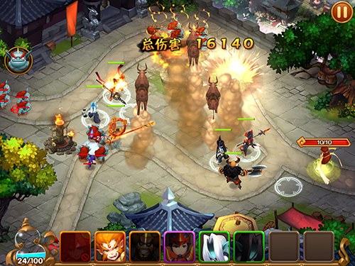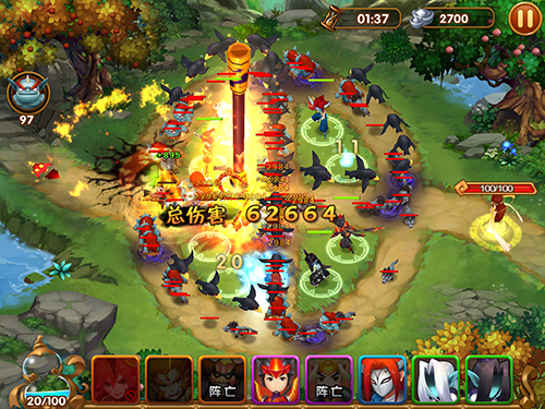 假设我们将孙悟空、牛魔王、天蓬元帅、雷震子、闻太师、赵公明、土行孙7位英雄派遣上阵,当怪物来袭,人世间最悲惨的一幕便上演了: 怪物来到孙悟空面前,大圣施展出分身绝技,N个悟空抓住怪物就是一顿胖揍。“哎哟我去,到底哪个才是真猴子啊!”怪物晕了。 一部分怪物终于冲破大圣防线,到达牛魔王镇守区域,刀枪剑戟纷纷往牛魔王身上招呼。“艾玛,牛魔王居然会反弹绝技,我居然被自己的刀砍死了。”怪物再晕。