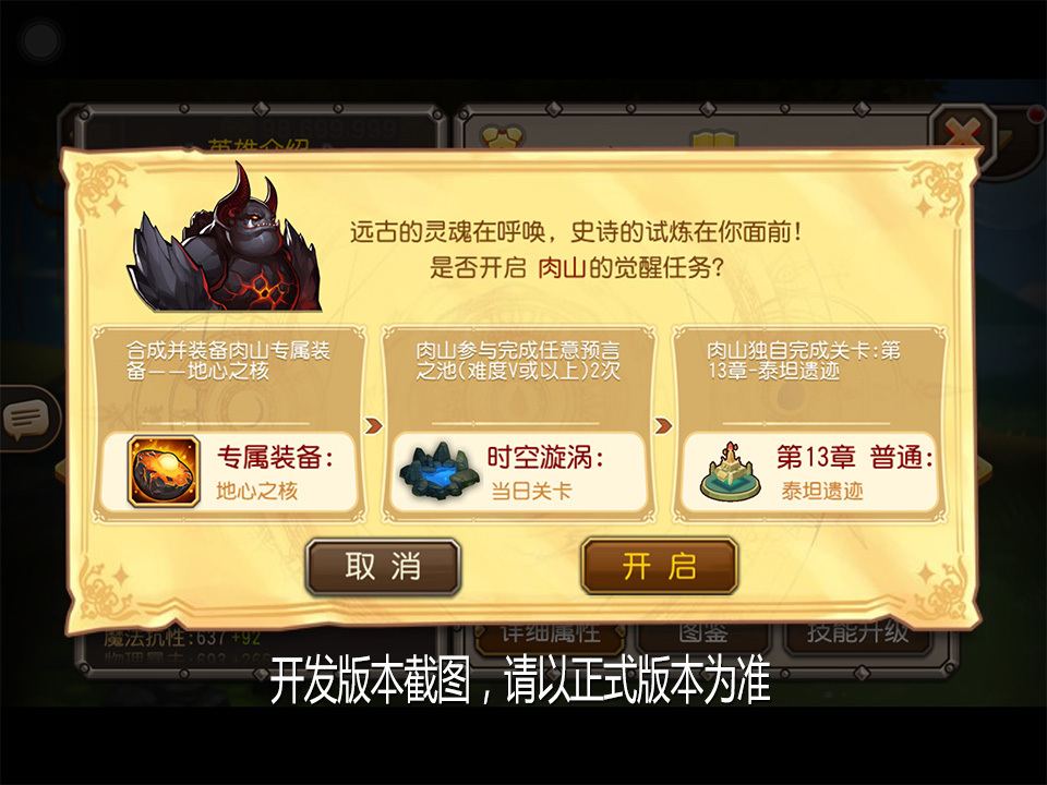 夏日深夜,繁星满天,大家安逸地熟睡中。然而“砰”的一声巨响,打破了这片沉寂。 “发送了什么事”小冰冰猛地从睡梦中惊醒。只听街上大喊“快看远方,火山爆发了!” 只见远处的火焰直冲云霄,浓烟逐渐向城区漫步,有种世界末日的感觉。 “叮当叮当”街上警报响起,“护卫队,快快城外列阵,请各路英雄豪杰快来搭把手!” 小冰冰赶忙拿起装备出城,与大伙们配合,只见远方一庞然大物率领黑压压大军逼近。 “吾乃肉山大魔王,沉睡万年,此般苏醒,必将掌控这片大陆!”一股震耳声传来。 小冰冰一声叹息,一场传奇大陆的殊死保卫战即将爆发。 大难临头,5月魂匣肉山凶煞入侵,队长大大们快来出阵迎敌吧!