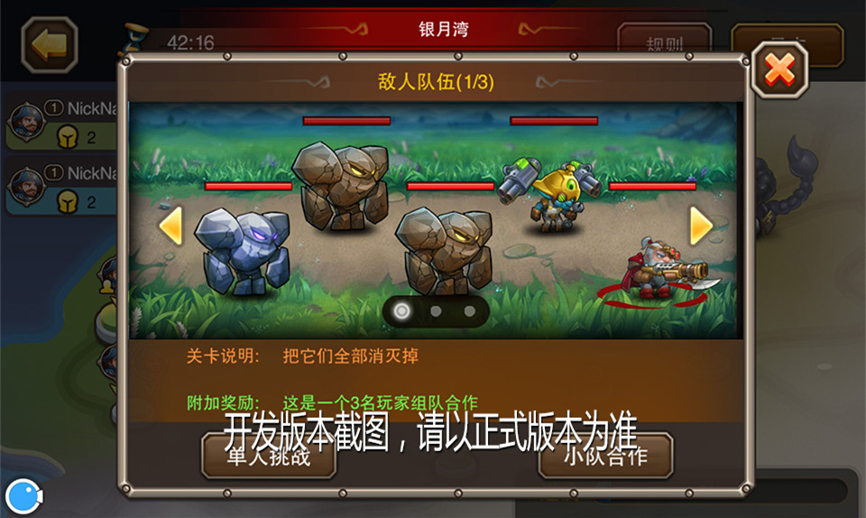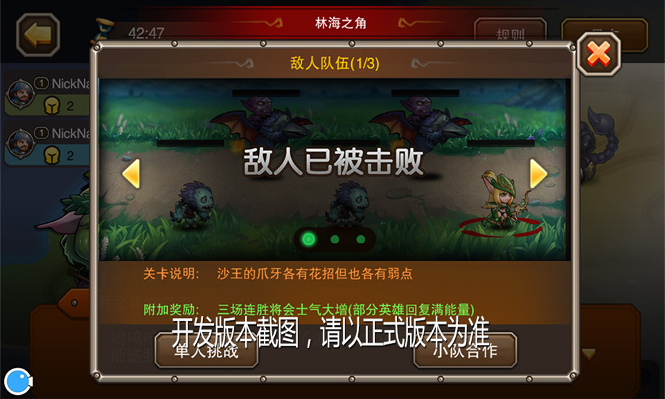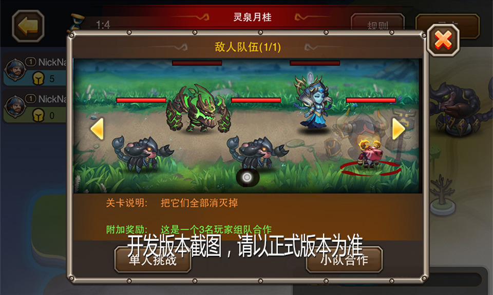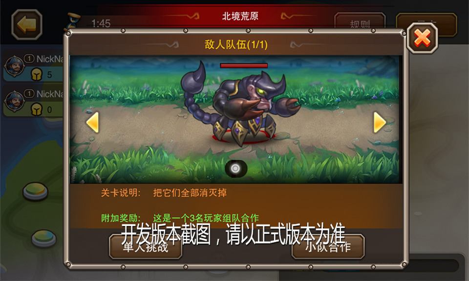 听闻最近队长大大们都非常疑惑,这扇尚未打开的新世界的大门究竟通向何方?小冰冰赶忙找到两个小伙伴前往这神奇之地探险。 寂静的夜晚,山谷中漆黑一片,吓得三人紧紧地手拉手,战战兢兢地走到大门前。 “哇,这门真是宏伟,就是太黑了,看不清形状”小冰冰惊叹道。 突然,夜空中一道强光直入门中,整个山谷恍如白日,金色的大门十分耀眼。 小冰冰沉醉于眼前的景象,一本金色书卷悬在空中,她们深知通往新世界的大门已经敞开,身体不由自主地门内走去。 神秘的力量终于积蓄完毕,全新跨服副本“勇者之书”等待队长大大们协作挑战! ![]() 【副本简介】 勇者之书是一种固定人数(3人)跨服组队的副本模式,与传统团本有很多相似点,3名玩家共享攻略进度,玩家可以在每张地图中自由选择攻略路径。玩家在途中不仅会参与一场场精彩的战斗,还会偶遇各类有趣的剧情。副本中充满极强的策略性,这需要玩家间积极沟通、协同作战,要么叫上朋友结队来战,要么期盼邂逅强悍的路人,越默契的配合,越有机会赢得更丰富的奖励。 接下来就由小冰冰带队来初探下神秘的勇者之书副本吧!!! 【主界面】 ![]() ![]() 点击勇者之书图标进入玩法主界面,可以选择想要讨伐的副本,查看副本基础信息、当前进度以及掉落奖励。 每次打本时所有参与成员都会消耗一张门票,日常消耗一定体力后会获得门票。每名玩家最多可同时携带2张门票。 每一个副本都以书籍形式包装成一个篇章,副本流程中的剧情,通关后的核心奖励都是以书籍形式展现的。 【组队】 ![]() ![]() 沿用当前联机模式的组队流程,可以选择创建房间开黑,队长创建房间后可发送邀请消息;也可以选择自由匹配,与路人建立友谊。 如果玩家已经有正在攻略的副本,那么玩家就不能切换其他的副本,并且只能通过继续冒险按钮进入副本继续战斗。 【剧情】 ![]() ![]() 开场剧情结束后,进入副本地图界面。副本为一片圣域区域,有一定的时间限制,在这个区域内,每个站点上都分布了一定的敌人,部分站点会有特定的任务和剧情,玩家需要合作消灭地图上全部敌人并且尽可能多的完成任务,触发各类剧情,最终以更高的完成度获得通关奖励。 ![]() 在地图界面中,玩家可以查看队友的当前情况,如果队友离线,会在队友信息栏显示“离”的状态;如果队友在线,则显示“在”,在地图上还可以看到他正在进行的举动。信息栏中的两个小图标分别代表队友的派遣人数和已阵亡英雄人数。 ![]() ![]() 点击地图界面中的日志可以打开日志面板,玩家的战斗记录,触发的剧情和获得的Buff会记录在日志中 【战斗】 ![]() 玩家从起点出发,只能攻击相邻可行进路径的站点,当一个站点上的敌人被全部消灭后,该站点图标改变,玩家可以移动到这一站点并自由选择下一个进攻目标,玩家可以在已经肃清的站点间随意移动。 站点分为小怪站点和BOSS站点,所有站点的战斗均可以采用单人或者合作模式攻击。 ![]() ![]() 小怪站点一般有多队敌人,玩家可以在交流后,分别击破各队敌人,提高效率。 遇到比较困难的队伍,玩家也可以选择合作出战,合作挑战的模式与联机梦境相同。 每个敌方队伍被击败后,站点页面上会显示“敌人已被击败”。 ![]() BOSS站点一般只有1-2场战斗,敌人的队伍更具威胁,玩家间需商量好对策,牢记三思而后行,否则贸然的进攻只会葬送自己派遣英雄的名额。 【派遣】 ![]() 玩家在选择英雄界面中会明确的看到已经派遣和未派遣英雄,如果已经上场的英雄数量等于总派遣名额,那么就不能从未上阵的英雄池中选择英雄出战了。 如果玩家有没有可使用的派遣名额,每次进入副本界面都会自动打开已派遣界面。 ![]() 合作挑战中,模式与联机梦境相同,每名玩家都可以出场2名英雄,共6名英雄出战。英雄也都出自每人的可派遣队列中。玩家可根据战场境况自由释放各类小技能和大招,共同协力击破各大难关。此外,合作对战中再次植入语音系统,在清晰的交流中,玩家间的配合势必会更加默契。 【战斗规则】 ![]() 每个站点的敌方队伍具备随机性。 一旦战斗开始后,将无法退出战斗。 战斗胜利后,己方英雄血量和能量将会保留,反之如果在1分30秒内就被敌方击败,则己方英雄全灭,敌方保留战斗结束的状态。 如果战斗超过1分30秒时限,战斗立即结束,己方和敌方都会保留战斗结束时的状态。 战斗开始后未正常结束,例如掉线,将会导致参战英雄集体阵亡,但每个关卡都设置有限的救援次数。在救援次数耗尽之前,派出的英雄将会被救回。 【结算】 ![]() 每一章节最后都会有强力的BOSS压阵,需要玩家思考好阵容争分夺秒地击杀它,这才是展现玩家真·智慧的时刻,能否迈过难关收获丰厚的奖励,全看团队间默契地配合啦! ![]() 达成以下条件,副本结束并进入结算阶段:A玩家消灭所有敌人;B副本时间耗尽。副本结束后,根据玩家副本的完成度,获取评分并且得到相应奖励。评分越高奖励越高! 勇者之书副本中将掉落特殊的战争学院书籍,据传对英雄的提升很给力呦,只有参与这个副本才有机会解锁和升级哒,队长大大们可千万不要错过哦! 以上就是小冰冰先锋小队在勇者之书世界中的所见所闻,剧情引人殊胜,战斗过瘾畅快,更重要的是在这个世界中,你将有机会偶遇到更多的新面孔,猪队友,神壕腿,全看队长大大们的造化喽,精彩的战斗篇章等待你的小队来撰写