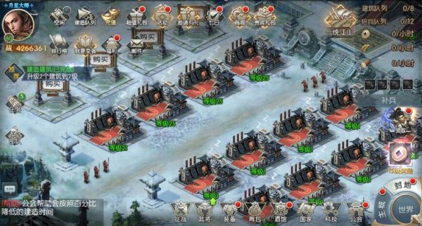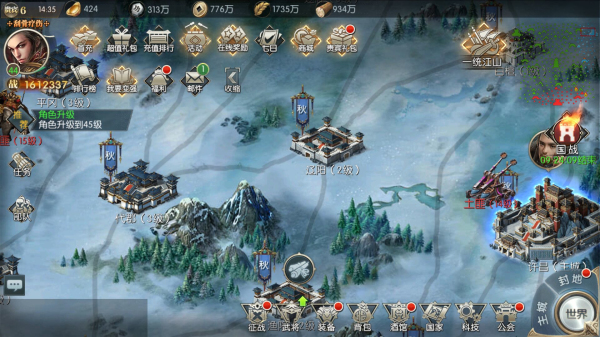 【攻城略地 300座无主城池等你征服】 要在乱世中站稳阵脚,就必须要有一个安身立命的城池,就好比刘备借的荆州。在《国战来了》中,玩家倒没有皇叔那么艰辛,每个人出场都已拥有一座最基础的城池,玩家需要在游戏里建立自己的主城、封地以及建设过程中升级粮草、兵营等建筑。玩家接下来的所有活动都离不开这些城池,城坚将强,城破人亡。