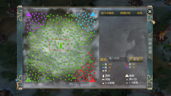 随着一次次出征的胜利,300座无主城池的占领也会随之发生变化,当最强大的王者,率领着他的国家,占领地图全部城池时,便完成了四国统一,完成征服天下的成就。