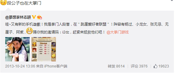 也许他们不是游戏的大神,但他们却是真正的明星。纯正武侠手游《大掌门》2012年10月正式开启公测,凭借纯正的武侠风格和极具创新的特色玩法,迅速蹿红为当年最火热的武侠手游。超高人气吸引了大批武侠粉丝的狂热追捧,许多喜爱武侠的影视明星也慕名而来,刘涛、林志颖、陈翔橙、叫兽易小星、天才小熊猫等纷纷加入游戏,也许每天和你论剑比武的就是某位大明星哦!