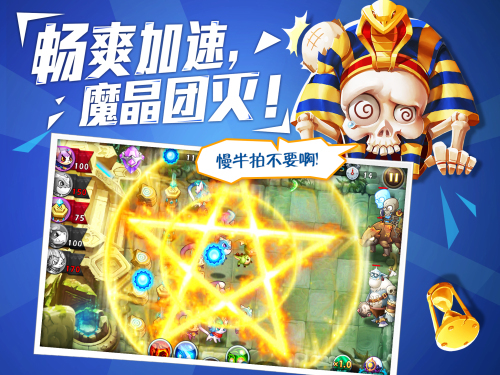 【慢半拍不要啊:畅爽加速,魔晶团灭!】 游戏免费开启加速X2.0,让你无需再等待恶魔的姗姗来迟,尽享游戏激情时速。《恶魔不要啊》独创“护卫魔晶”系统,打造炫酷团灭全屏技能,同时拥有自动攻击技能,可让玩家在开局时拥有更多时间收集资源,布局战斗力最强的阵型。