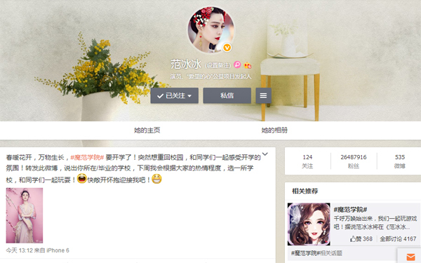 【活动介绍】 一直以来大家所期待的《范冰冰魔范学院》很快就要开学啦,各位丽人准备好入学了吗?想不想与女神范冰冰有一次零距离的接触?那就赶快参加我们的活动吧!