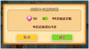 关卡次数购买 1、关卡次数不够时可花费钻石购买次数,成为VIP可购买更多的次数。