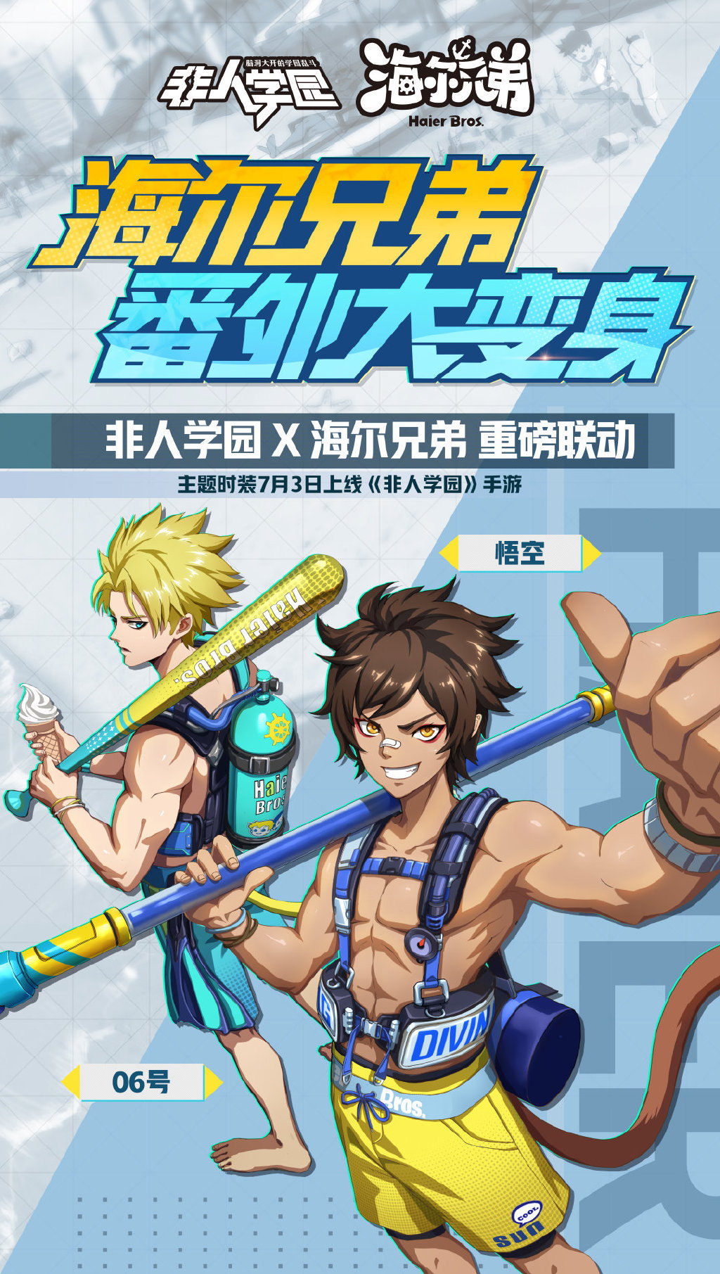 开天辟地悟空归来,海量福利惊喜来袭!《非人学园》周年庆嘉年华狂欢火热进行中,万众期待的传说新英雄——悟空,今日也正式登临学园。他将用一身过人本领,与06号展开针锋相对的阵营战。相爱相杀的两人,还将穿上特别联动时装【海尔兄弟】,与大家一起畅享夏日清凉。此外,还有登录领周年庆宝箱、对战得永久英雄时装等活动狂欢开启,等你加入喔!![]() 著名探险家悟空 纵横三界威震八方 悟空,男,三界著名探险家,旅途中的奇遇让他成了大圣的现行代理。悟空喜欢无拘无束,讨厌被束缚在一个地方,过着重复的生活。因此,他果断在完成学业后,就开始了周游三界的冒险。分身术是悟空的看家本领,筋斗云、金箍棒、金箍都是他冒险的神器。 ![]() 在战场中,悟空拥有较强的突进能力和输出能力,对敌方后排威胁较大。悟空被动获取的悟桃可以强化技能和回复血量,配合1技能获取和灵活控制悟桃的数量,以及2技能的快速位移,可以有效地进行技能组合,通过3技能打出福袋斩杀的高额伤害。 ![]() 海尔兄弟时装上架 清凉泳装大海味道 周年庆典狂欢来袭,非人学园x海尔兄弟联动时装清爽上线。悟空与06号,化身海尔兄弟,换上了清凉泳装,朝着大海出发。时装以泳裤作为设计基础,并进一步追加了更显硬核的潜水装备,氧气瓶上还印着“Haier Bros.”字样与海尔兄弟头像。悟空的造型,有着黑色短发、黝黑皮肤、柠檬黄沙滩裤,一眼看上去就是海尔哥本哥。06号作为海尔弟,则是金黄短发、白皙的皮肤、水蓝色沙滩裤,连手上拿着的冰淇淋都安排得清清楚楚!战场上,两人的特效也都带上了清凉的海蓝色,一招一式中,各种贝壳、海螺、海星四散飞舞,充满了夏日大海的味道! ![]() 阵营战即日打响 激燃战斗奖励丰厚 换上泳装的悟空和06号在海滩相遇,一位早已成为学园的传说,一位是那个人的完美复制品,究竟谁才是最强?激燃阵营战现已正式打响!即日起至7月17日,选择加入悟空或06号的阵营,参与战斗即可为自己所在阵营累计积分,最后总积分更高的阵营会获得胜利,获得海量奖励。除此之外,同学们还能凭借积分获得海尔兄弟联动时装专属染色、阵营专属头像框、阵营战纪念币,在兑换商店兑换悟空、06号时装专属表情以及其他奖励! 暑期狂欢停不下来 更多福利等你来拿 除了阵营战、海尔联动时装,在周年庆嘉年华暑期狂欢中,还有更多精彩活动等你参与,超多福利等你来拿!活动期间,7月5日至7月7日,这个周末每日登录均可领取周年庆宝箱,累计登录3日还可一次性获得神奇星星、合同文本以及迷之染色剂。 ![]() 每场战斗后,必掉落英雄们的生日礼物,有机会开出永久英雄、时装。生日礼物包括白象的折扇、雷姆的游戏机、龙马的金话筒、土地的红酒杯,以及稀有奖励悟空的蟠桃。使用后均有机会获得不同的永久英雄、时装、体验卡或金砖! ![]() 暑期狂欢惊喜不断,《非人学园》周年庆嘉年华火爆进行中!传说级的新英雄悟空现在也正式来到学园,将狂欢热潮推向更高点。所以赶快叫上你的小伙伴们,选择好你们支持的阵营,来一场周年庆激燃的阵营对战吧! 【关于《非人学园》】 网易无厘头漫画风5V5对战手游《非人学园》周年庆盛大开幕,新英雄、新战场、新玩法、新视觉,进化之路全程高能,脑洞大开焕新之旅! 耳熟能详的神仙妖魔,化身为非都超能力者,一言难尽的无厘头画风,欢乐逗趣的吐槽,全程高能,零尿点欢乐对决;英雄亲密度,打造你的本命专属。让我们一起在这充满魔性的漫画世界,摩擦出不可思议的新章节! |