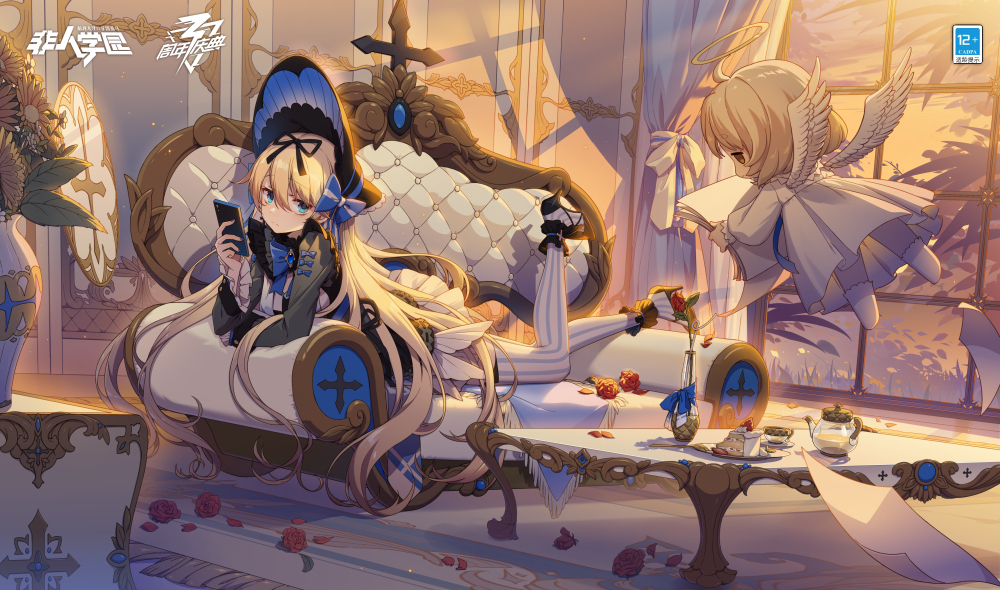 缎面的哥特Lolita裙装,与丝绸般的金发交相辉映;蕾丝花边与大蝴蝶结装点的波奈特帽下,是晓音在慵懒地侧目。甜甜百褶裙依附下的慵懒少女晓音,霎时变得高贵又优雅。三周年活动期间,完成活动任务,即可免费获取晓音专属新时装【音莉莎白】~